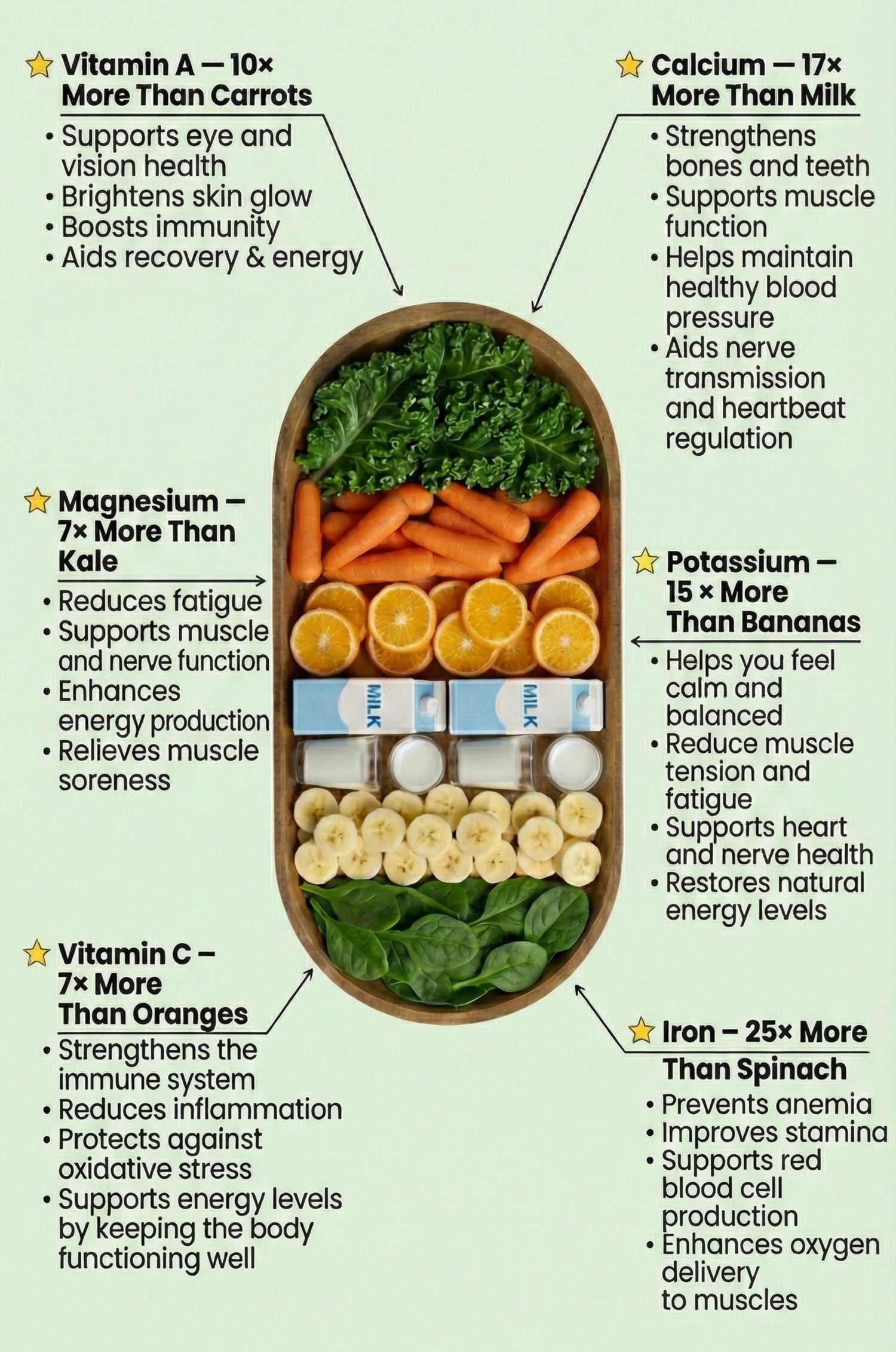 Long-term energy reserves rebuild. Vitamin A, C, iron, calcium, amino acids, and antioxidants support sustained vitality, stronger immunity, and resilience to stress.