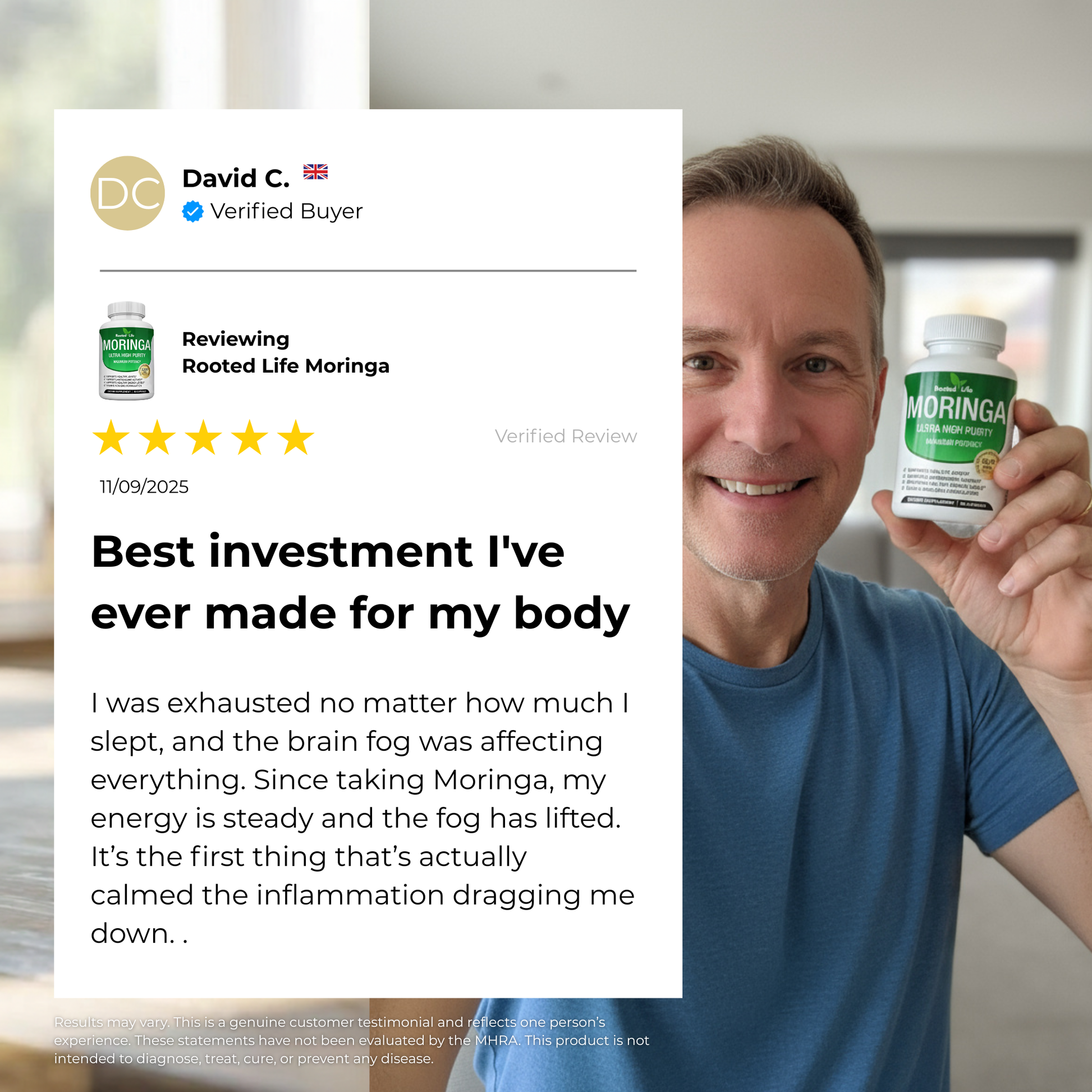 Our customers often report feeling improvements within just a few days to a week! For the best long-term results, however, consistent use of Rooted Life Moringa is key. It helps to continuously nourish and support your body over time.
