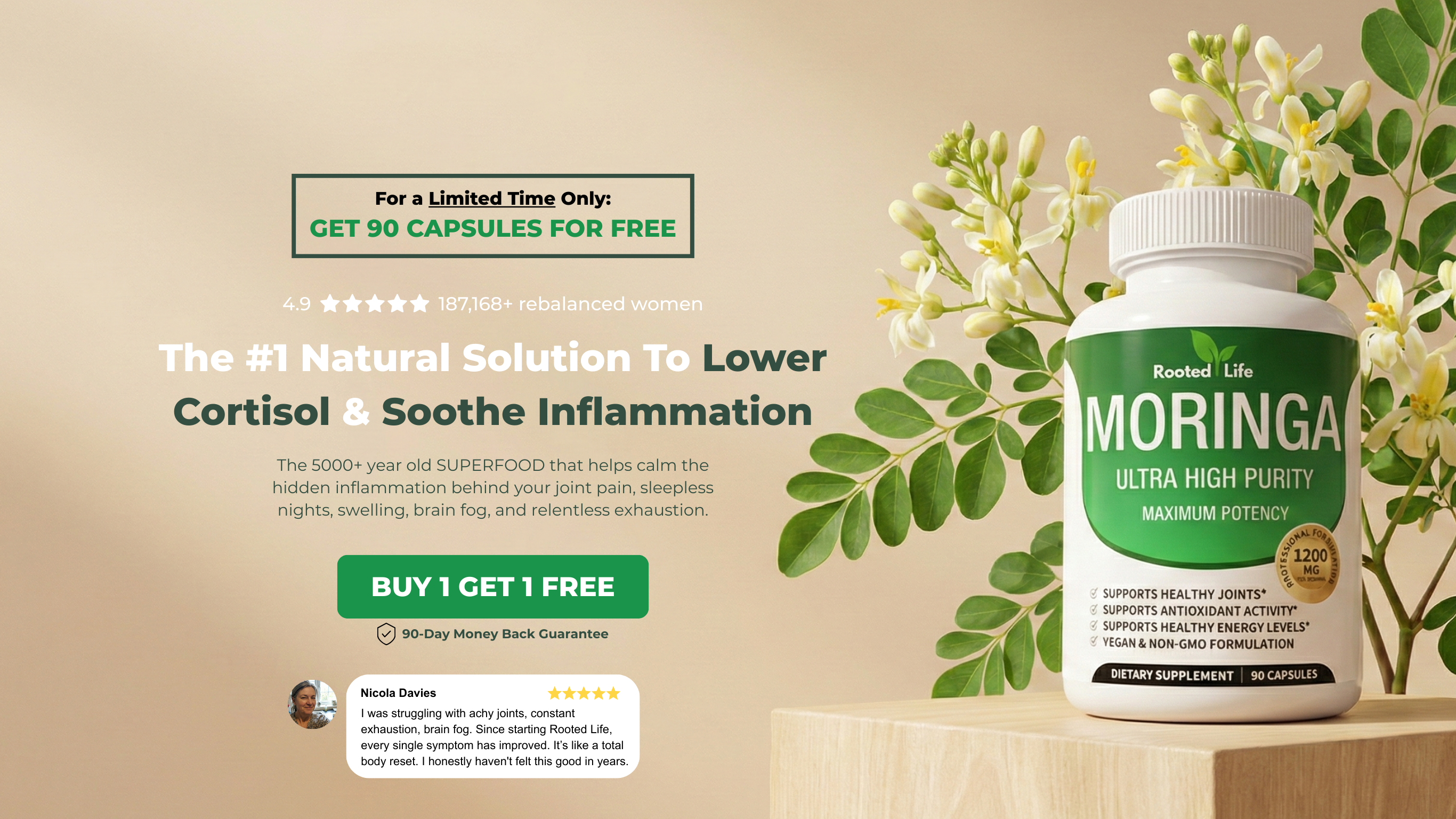 We stand firmly behind the efficacy of our Rooted Life Moringa, which is why we offer a 90-Day Risk-Free Guarantee. If you don't experience improvement in your energy levels or overall health, please contact us at support@tryrootedlife.com within 90 days of receiving your product.